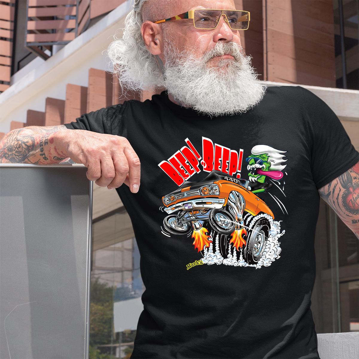 Beep Beep Hot Rod T Shirt – fast, bold, and full of hot rod energy. Inspired by underground garage art and the raw spirit of old-school muscle, this tee is made for rebels, gearheads, and Kustom Kulture enthusiasts who live life full throttle.