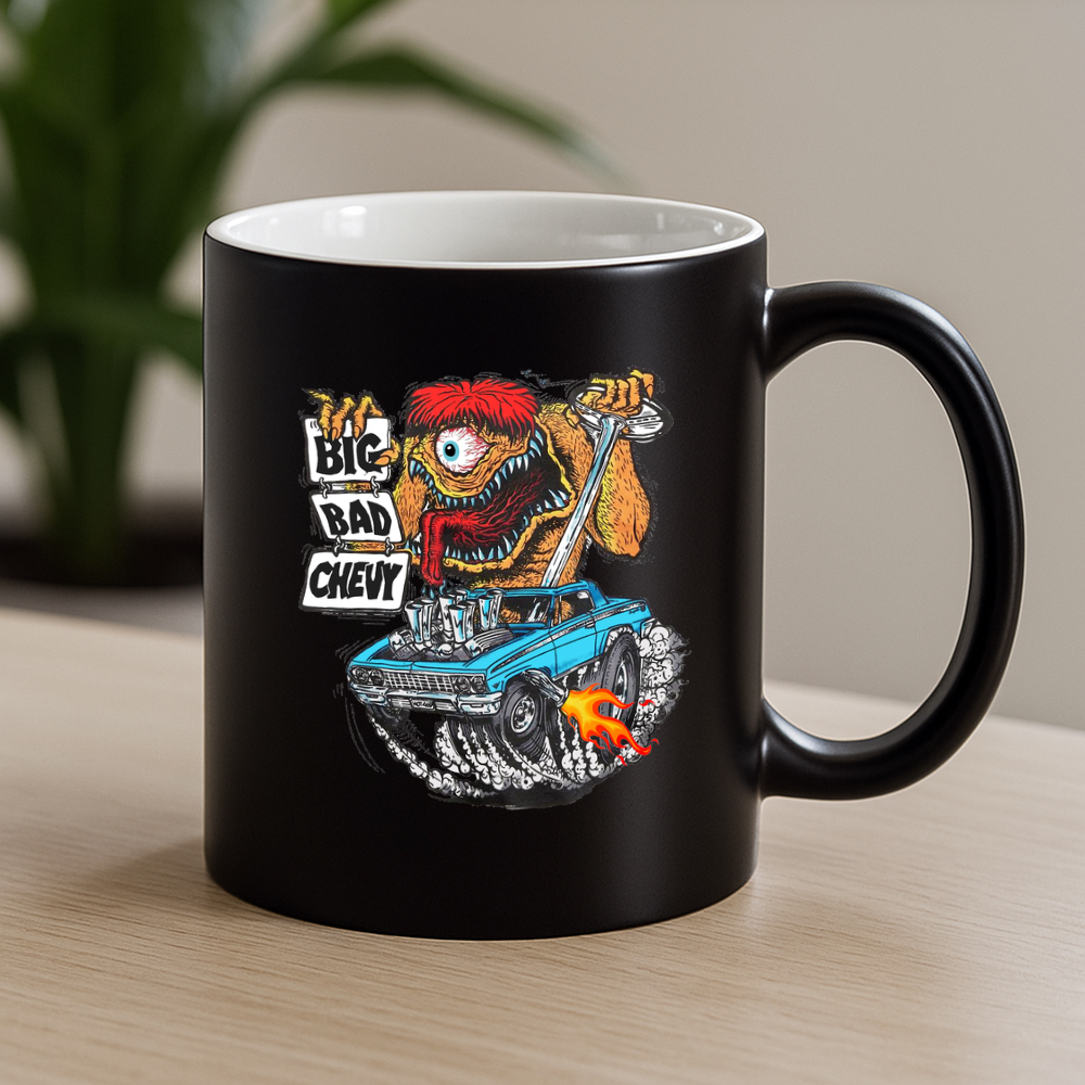 Made from glossy black ceramic and available in 11oz and 15oz sizes, each mug is printed with high-quality sublimation for bold, vivid artwork that pops. It’s built for the wrenchers, caffeine addicts, and midnight designers who live loud and sip harder.
