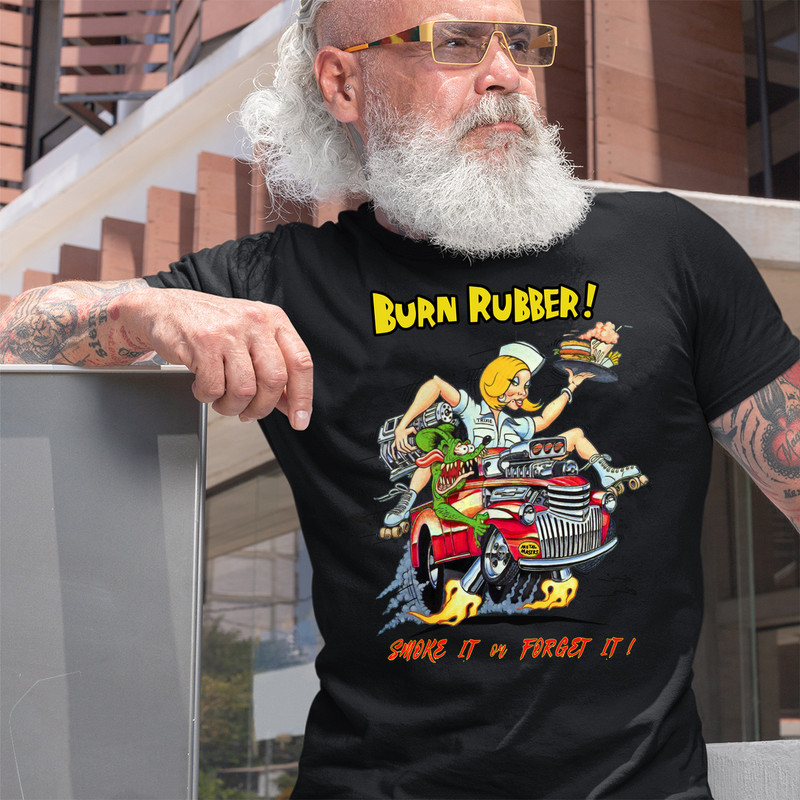 Light it up with the Burn Rubber, Smoke It or Forget It T-shirt – a full-throttle blast of muscle, metal, and pure rebellion. Fueled by underground garage art and the raw spirit of classic hot rods, this tee is made for gearheads, outlaws, and die-hard Kustom Kulture warriors. Whether you’re wrenching late in the garage or leaving tire marks on the streets, it delivers bold attitude, raw power, and authentic hot rod style every time.