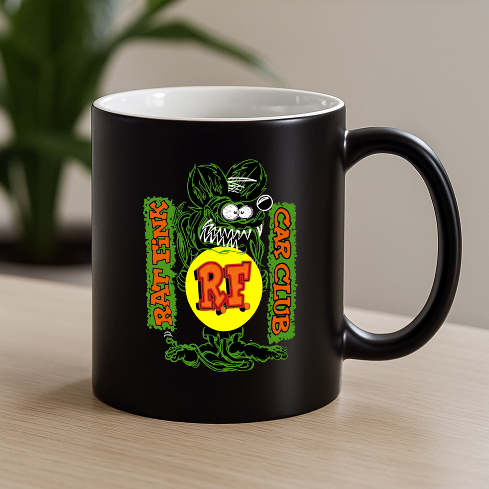 Welcome to TeeTurbo.com, your garage-fueled gear hub. Now you can rev up your mornings with a mug that screams attitude. Inspired by hotrods, Rat Fink chaos, and classic garage grit, this black ceramic mug isn’t just drinkware — it’s a lifestyle statement.