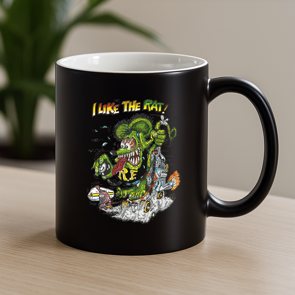 Welcome to TeeTurbo.com, your garage-fueled gear hub. Now you can rev up your mornings with a mug that screams attitude. Inspired by hotrods, Rat Fink chaos, and classic garage grit, this black ceramic mug isn’t just drinkware — it’s a lifestyle statement.
