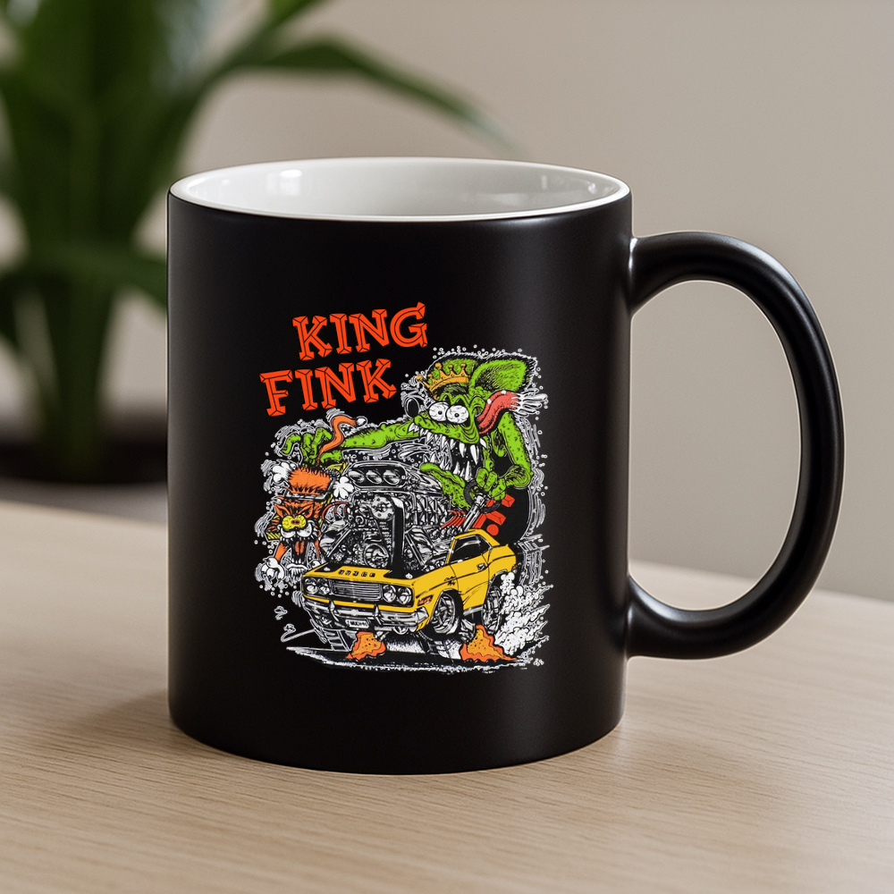 Welcome to TeeTurbo.com, your garage-fueled gear hub. Now you can rev up your mornings with a mug that screams attitude. Inspired by hotrods, Rat Fink chaos, and classic garage grit, this black ceramic mug isn’t just drinkware — it’s a lifestyle statement.