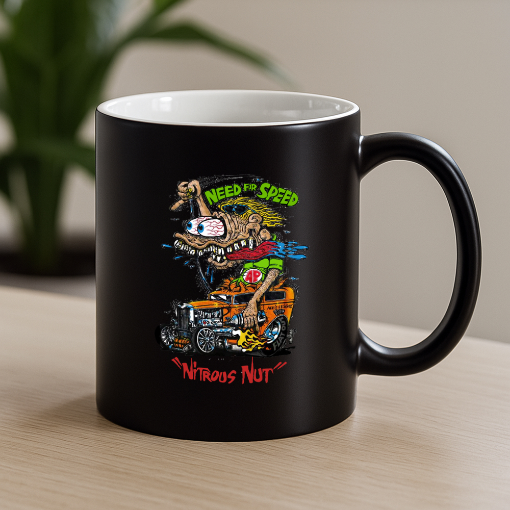 Made from glossy black ceramic and available in 11oz and 15oz sizes, each mug is printed with high-quality sublimation for bold, vivid artwork that pops. It’s built for the wrenchers, caffeine addicts, and midnight designers who live loud and sip harder.