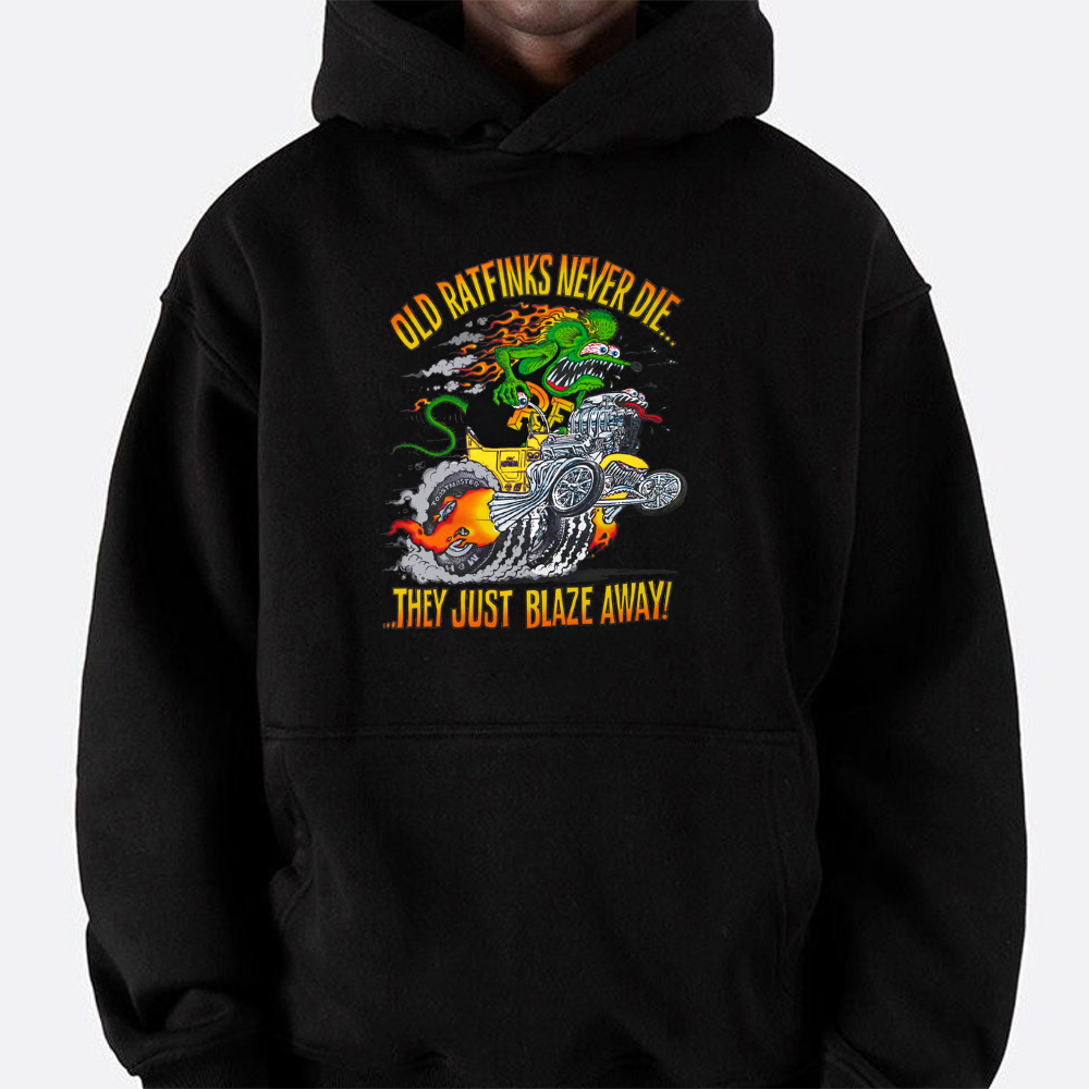 Be the first to review “Old Rat Fink Never Die, They Just Blaze Away Hoodie”