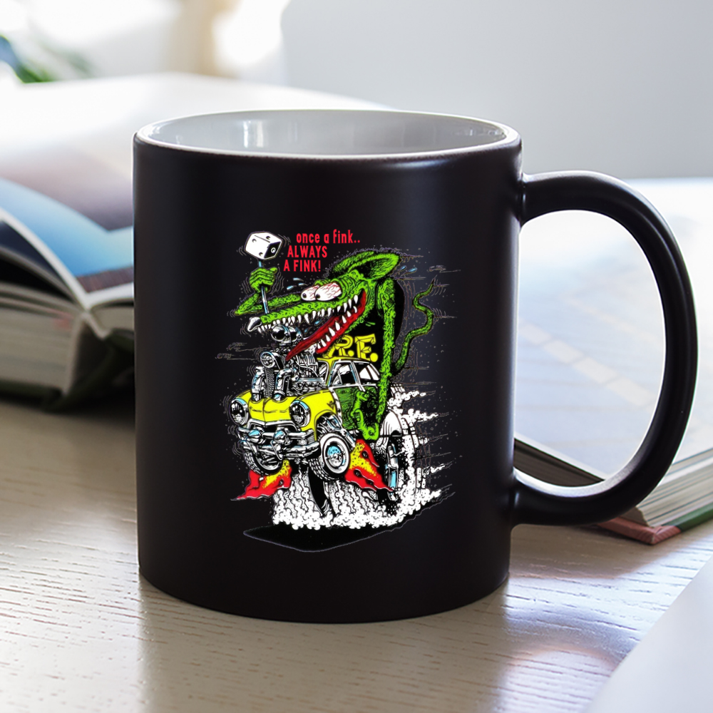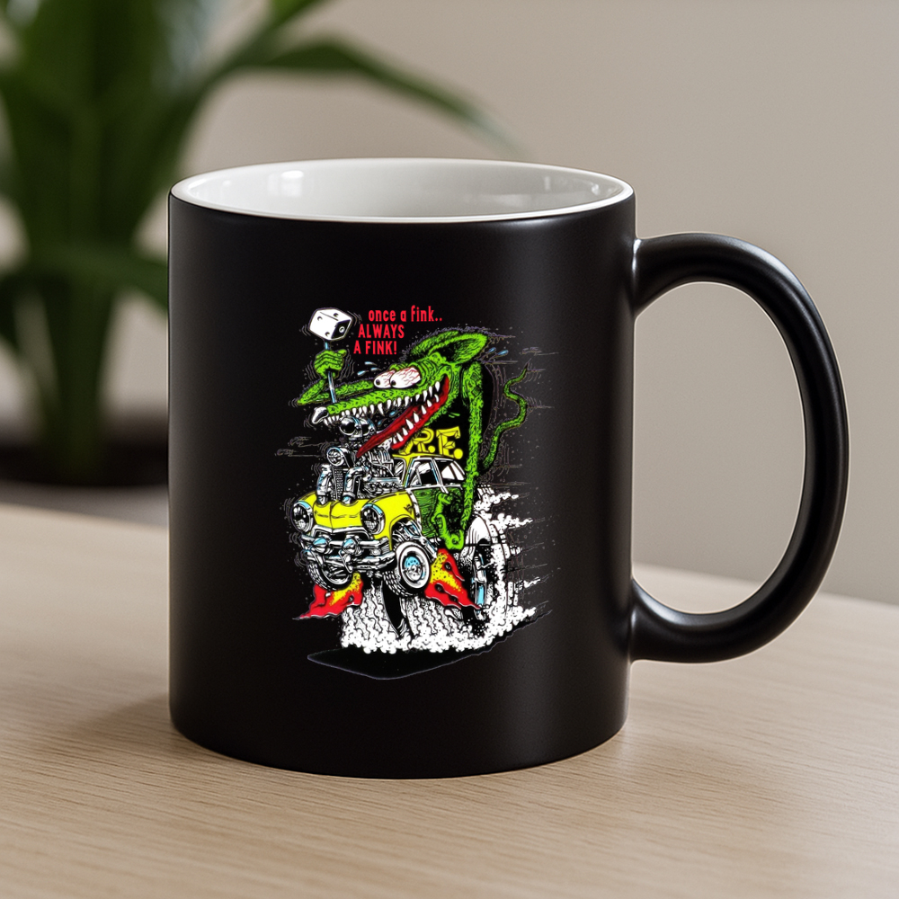 Welcome to TeeTurbo.com, your garage-fueled gear hub. Now you can rev up your mornings with a mug that screams attitude. Inspired by hotrods, Rat Fink chaos, and classic garage grit, this black ceramic mug isn’t just drinkware — it’s a lifestyle statement.