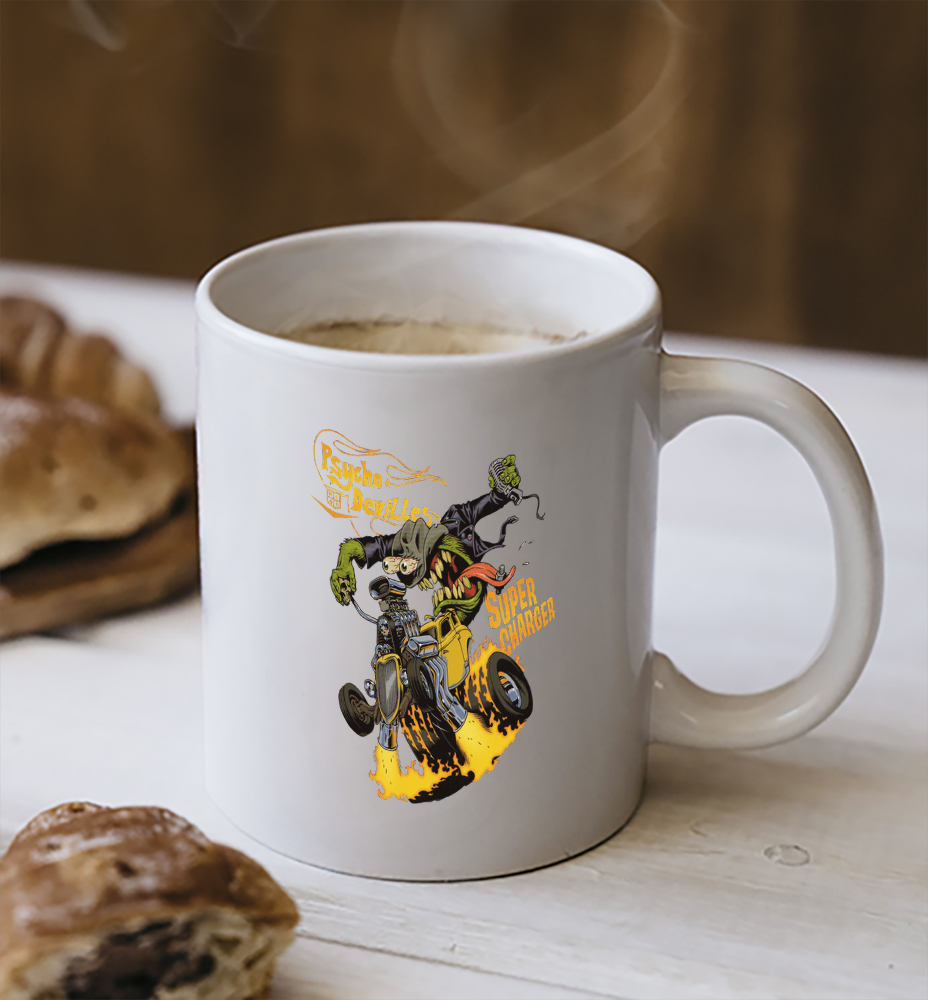 Made from glossy black ceramic and available in 11oz and 15oz sizes, each mug is printed with high-quality sublimation for bold, vivid artwork that pops. It’s built for the wrenchers, caffeine addicts, and midnight designers who live loud and sip harder.