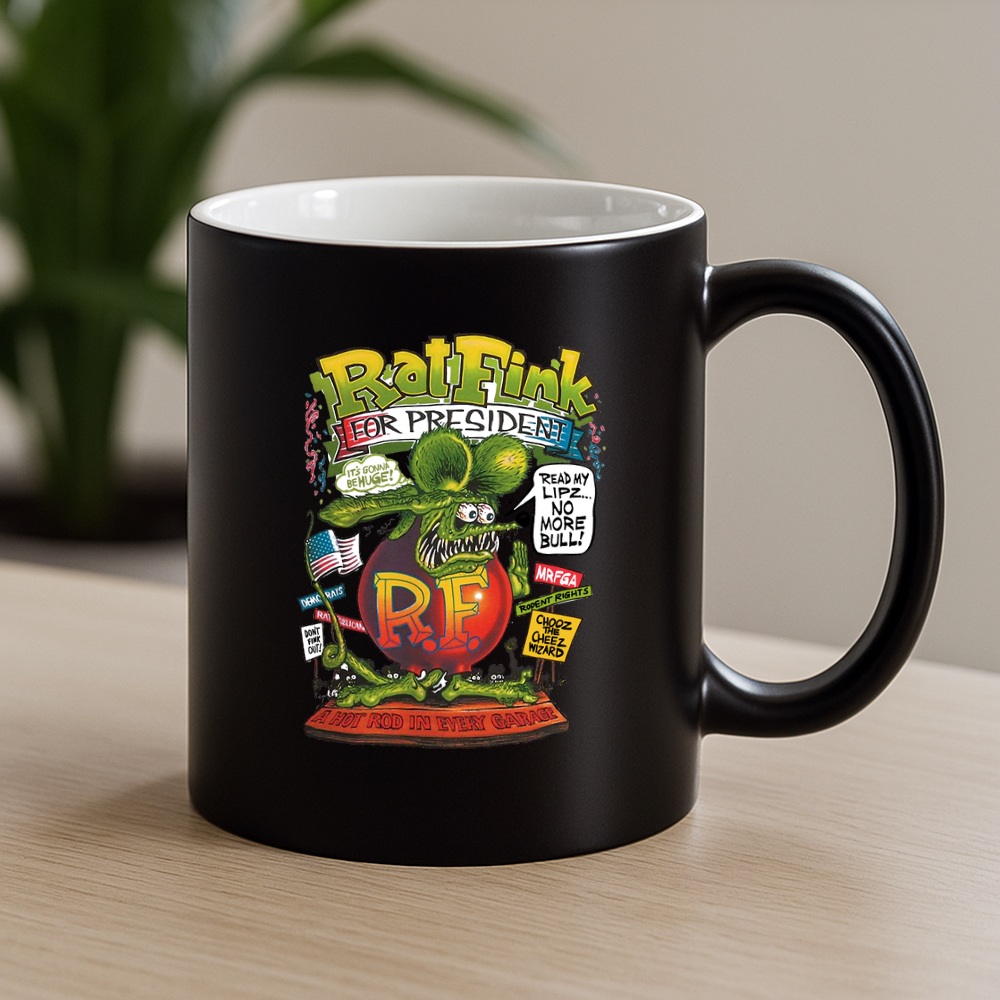 Welcome to TeeTurbo.com, your garage-fueled gear hub. Now you can rev up your mornings with a mug that screams attitude. Inspired by hotrods, Rat Fink chaos, and classic garage grit, this black ceramic mug isn’t just drinkware — it’s a lifestyle statement.