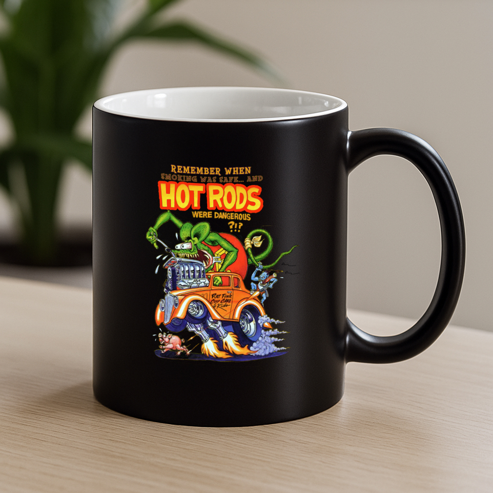 Welcome to TeeTurbo.com, your garage-fueled gear hub. Now you can rev up your mornings with a mug that screams attitude. Inspired by hotrods, Rat Fink chaos, and classic garage grit, this black ceramic mug isn’t just drinkware — it’s a lifestyle statement.