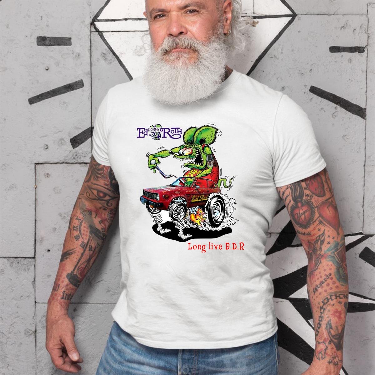 Rat Fink Long Live BDR T-Shirt – a no-rules collision of muscle, metal, and madness. Born from the underground garage scene and the raw fire of classic hot rods, this tee is built for rebels, grease junkies, and Kustom Kulture outlaws.