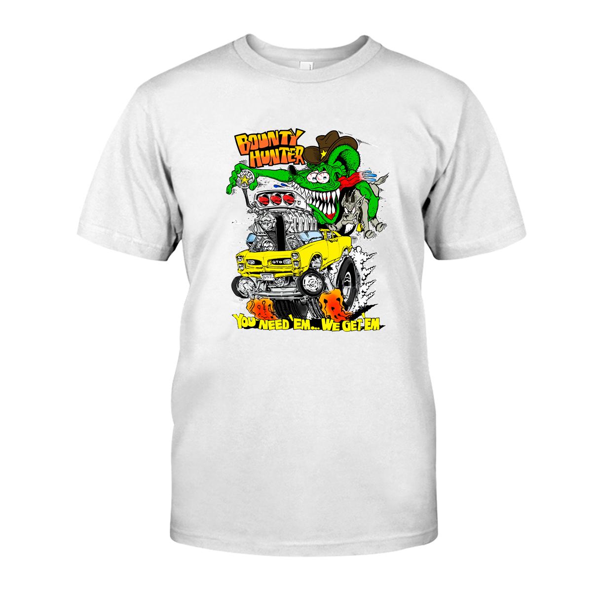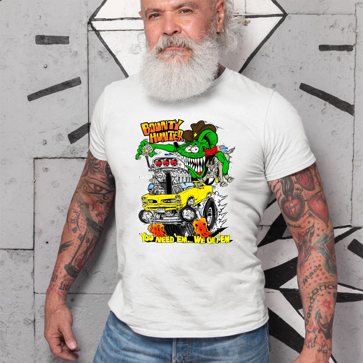 Rat Fink Bounty Hunter T-Shirt – savage, fearless, and built for chaos. Fueled by underground garage art and the raw fire of old-school hot rods, this tee is made for rebels, gearheads, and Kustom Kulture warriors who take no prisoners.