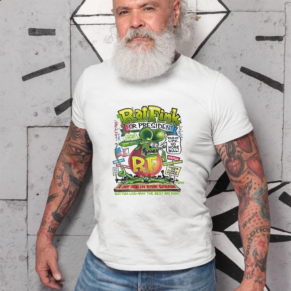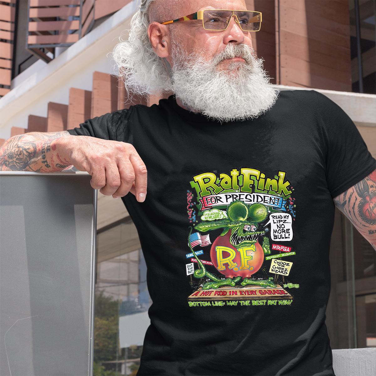 Make a statement with the Ratfink For President T-shirt – a full-throttle blend of muscle, metal, and unapologetic rebellion. Inspired by underground garage art and the raw energy of classic hot rods, this tee is crafted for rebels, gearheads, and true Kustom Kulture warriors. Whether you’re wrenching in the garage or tearing up the streets, it delivers bold attitude, fearless style, and authentic hot rod spirit every time.