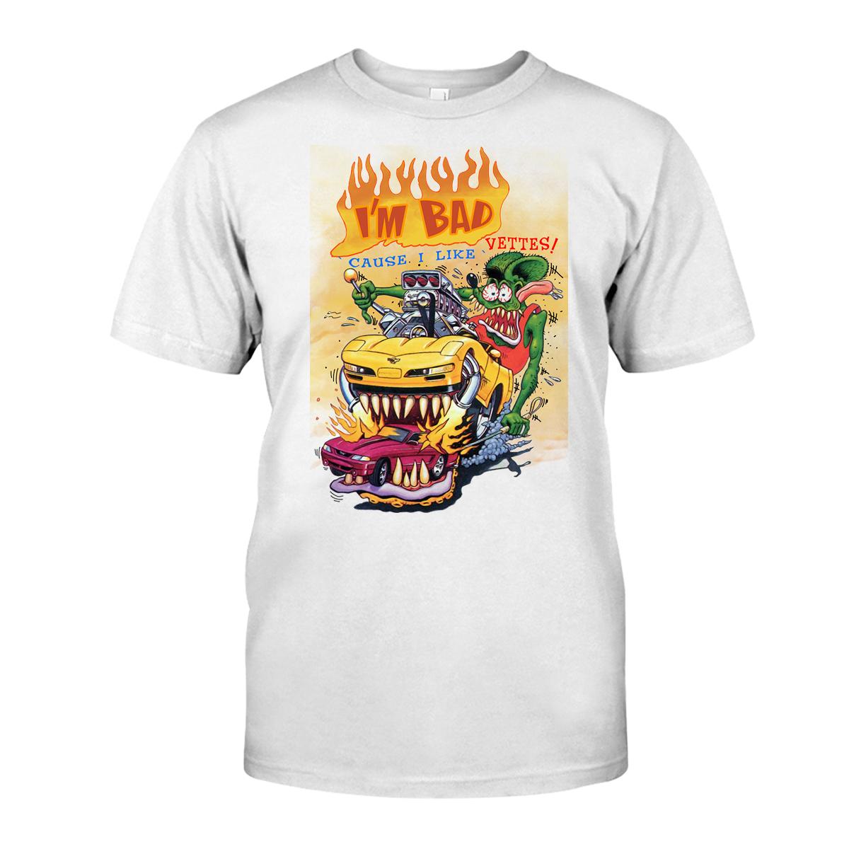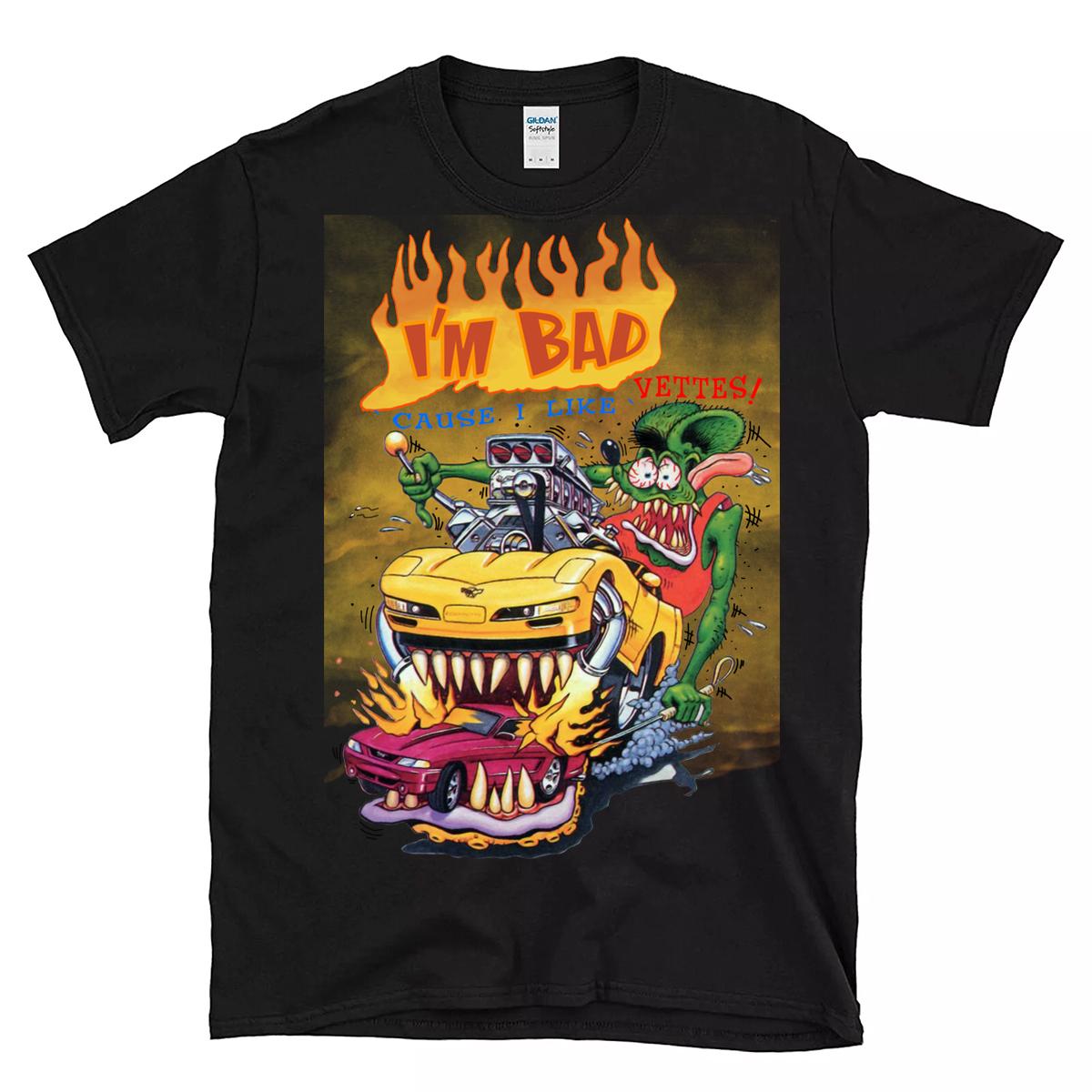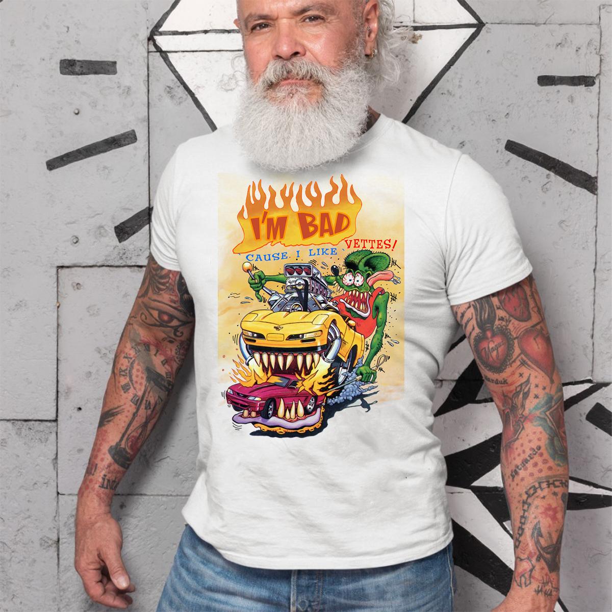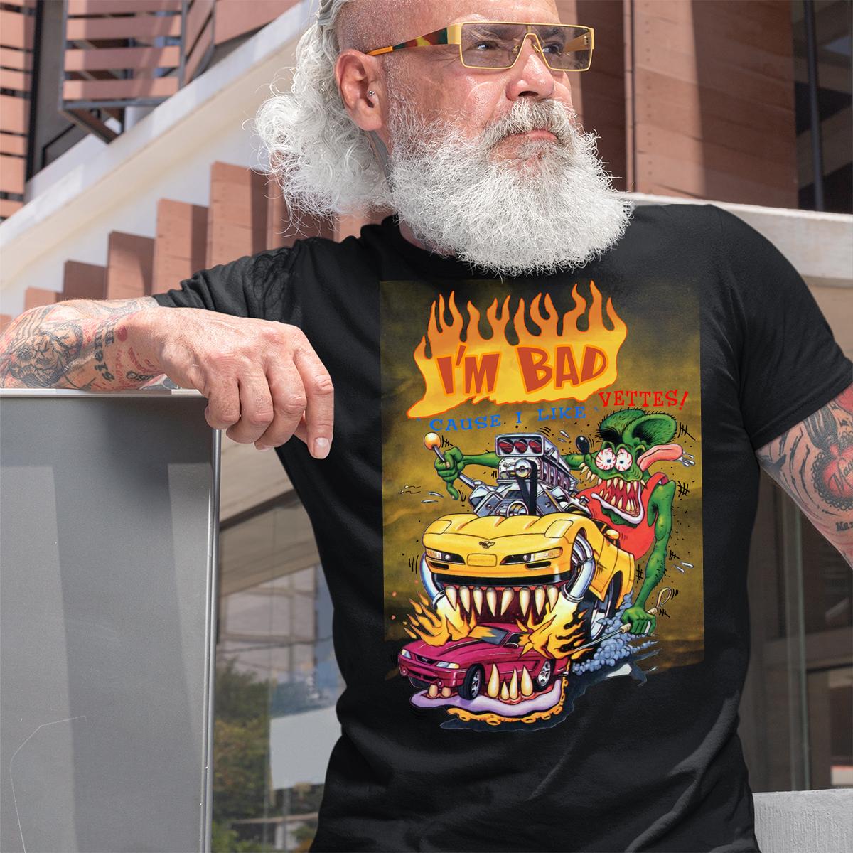 Own the streets with the Ratfink, I Am Bad ‘Cause I Like Vettes T-shirt – a full-throttle mix of muscle, metal, and wild rebellion. Inspired by underground garage art and the raw spirit of classic hot rods, this tee is made for gearheads, rebels, and true Kustom Kulture warriors. Whether you’re wrenching in the garage or tearing up the streets, it delivers bold attitude, fearless style, and authentic hot rod energy every time.