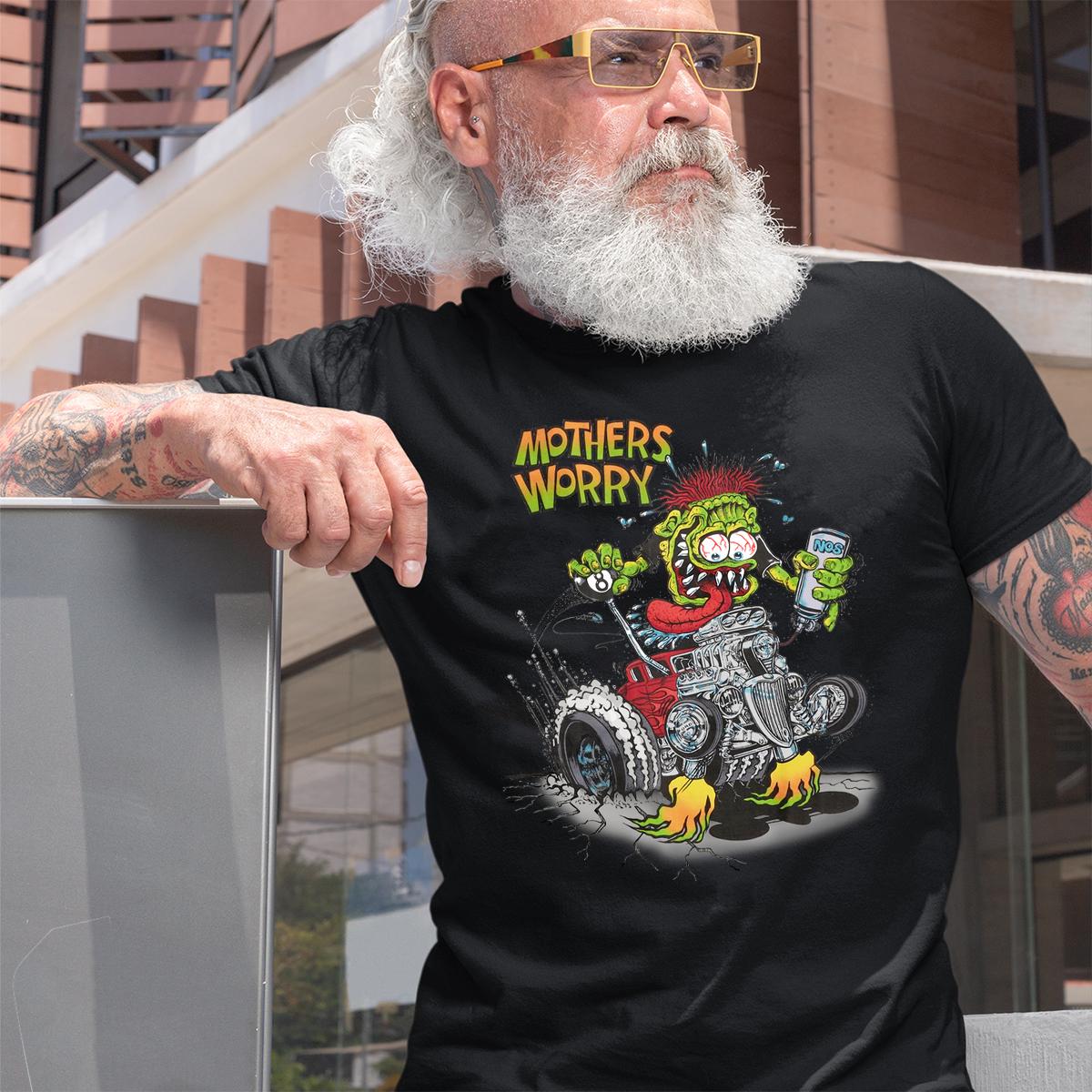 Rat Fink Mother Worry T-Shirt – dripping with old-school menace and hot rod chaos. A mash-up of muscle, metal, and mischief, this tee channels underground garage art and the wild spirit of vintage speed culture.