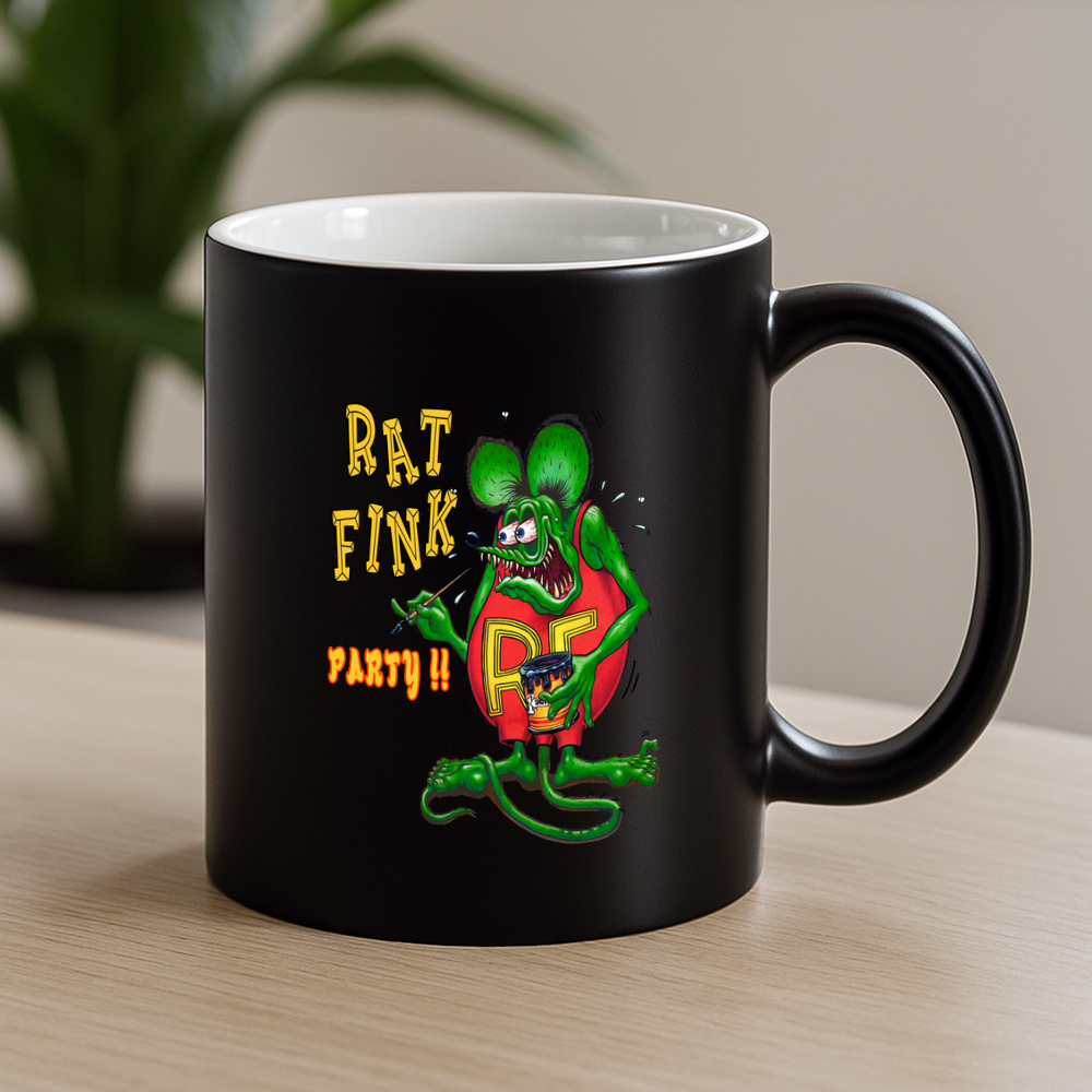 Welcome to TeeTurbo.com, your garage-fueled gear hub. Now you can rev up your mornings with a mug that screams attitude. Inspired by hotrods, Rat Fink chaos, and classic garage grit, this black ceramic mug isn’t just drinkware — it’s a lifestyle statement.