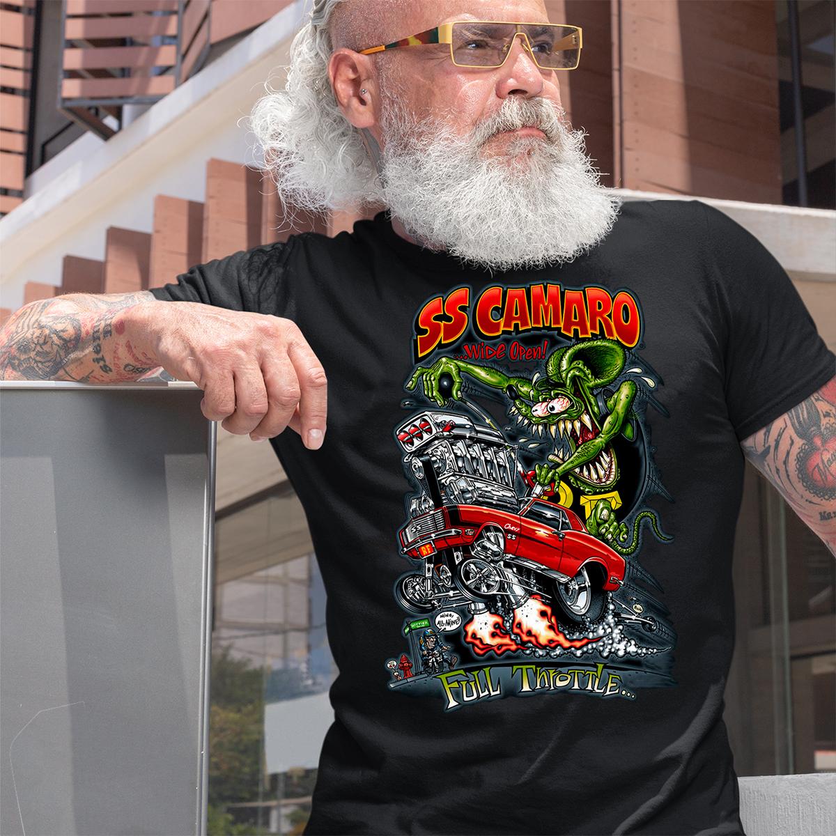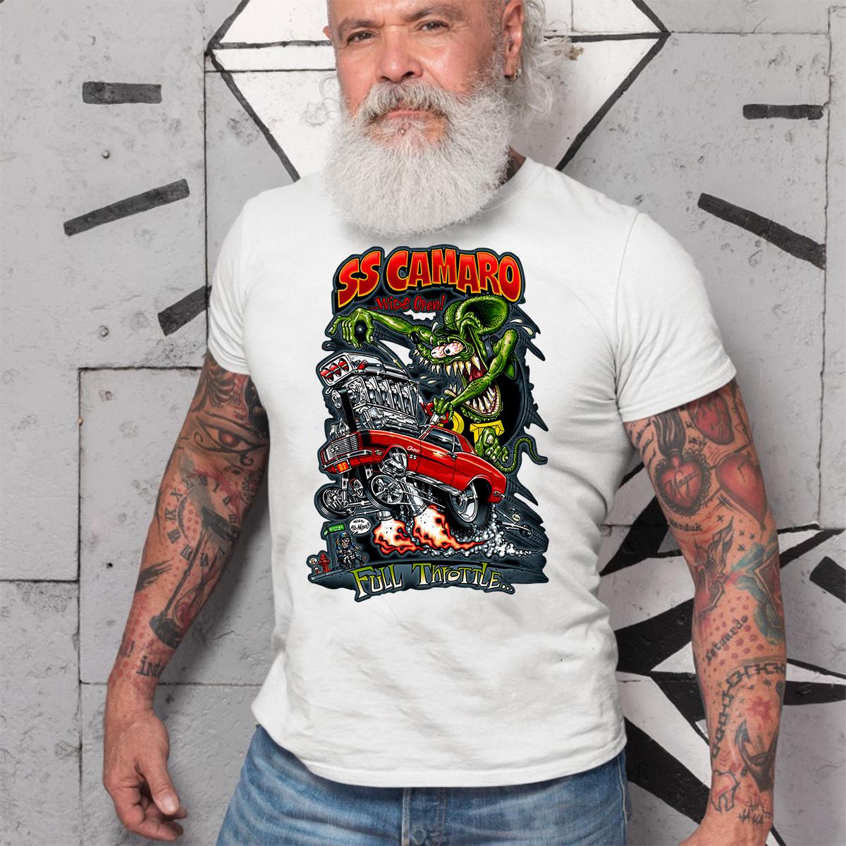 Burn rubber with the Ratfink SS Camaro T-shirt – a full-throttle blend of muscle, metal, and raw rebellion. Inspired by underground garage art and the untamed spirit of classic hot rods, this tee is built for gearheads, rebels, and true Kustom Kulture warriors. Whether you’re wrenching in the garage or tearing up the streets, it delivers bold attitude, fearless style, and authentic hot rod energy every time.
