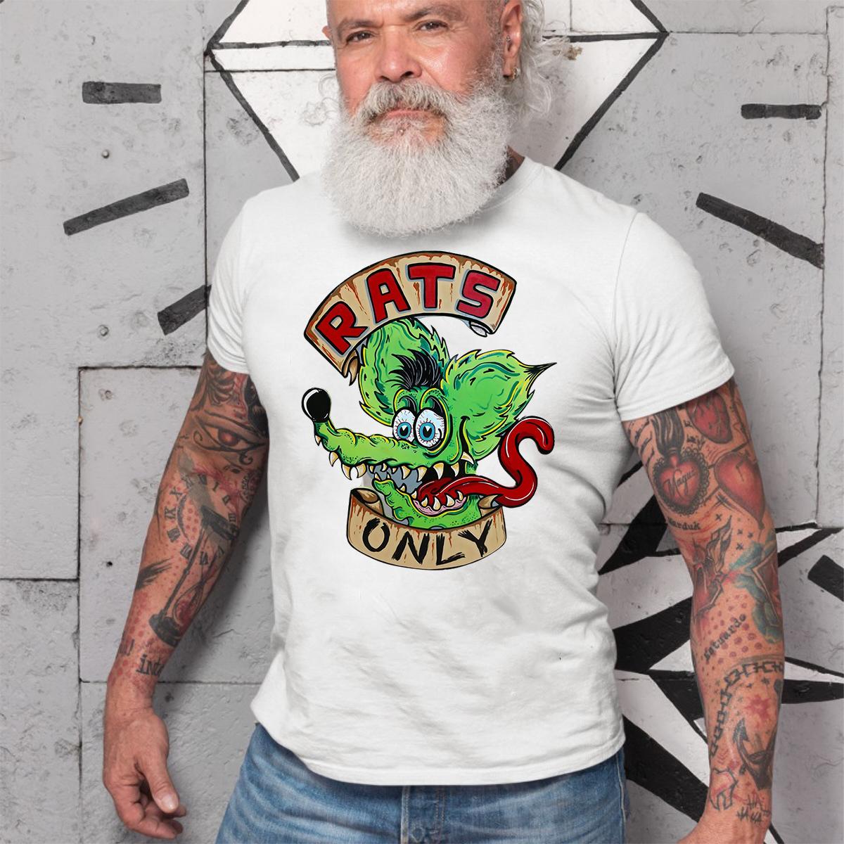 Unleash the beast with the Rats only T shirt ? a full-throttle fusion of muscle, metal, and mayhem. Inspired by underground garage art and the raw energy of old-school hot rods, this tee is made for rebels, gearheads, and Kustom Kulture warriors. Whether you’re wrenching in the garage or tearing up the streets, this shirt brings the attitude loud and clear.