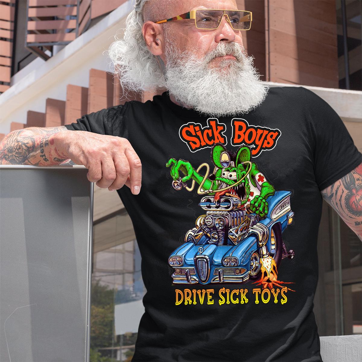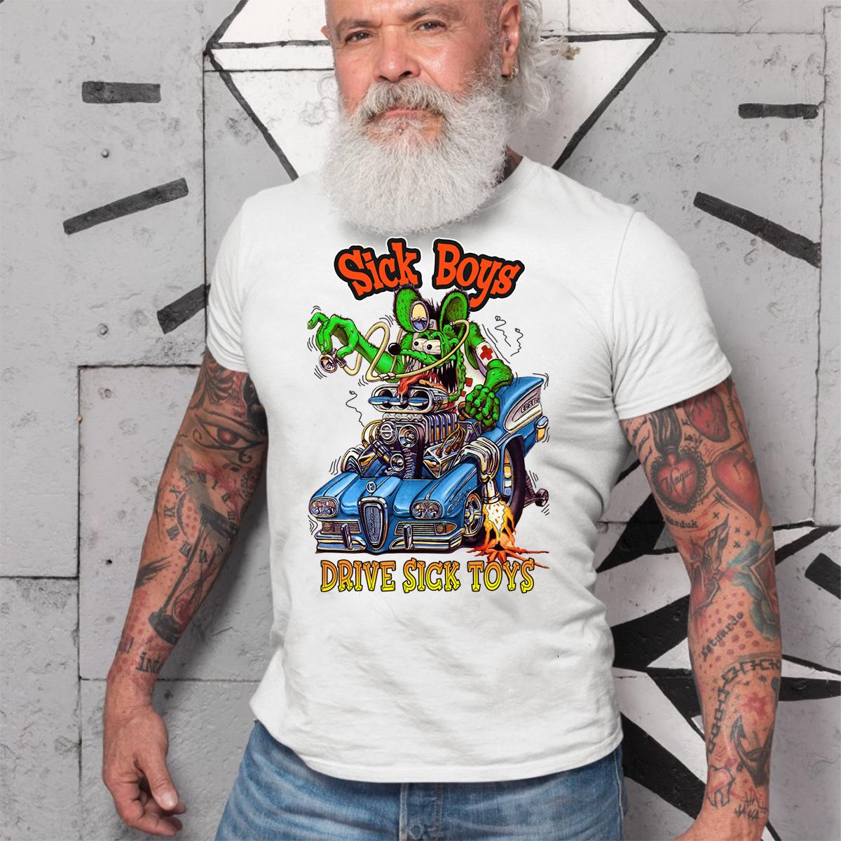 Hit the streets with the Sick Boys Drive Sick Toys T-shirt – a full-throttle blend of muscle, metal, and raw rebellion. Inspired by underground garage art and the untamed energy of classic hot rods, this tee is crafted for gearheads, rebels, and true Kustom Kulture warriors. Whether you’re wrenching in the garage or tearing up the streets, it delivers bold attitude, fearless style, and authentic hot rod spirit every time.