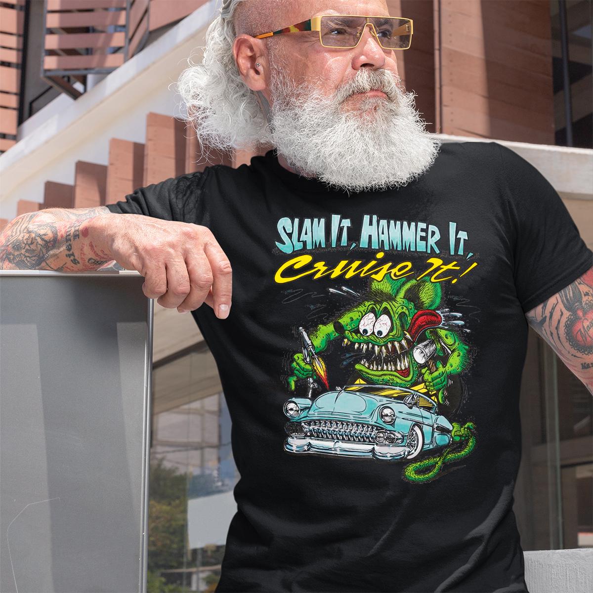 Crank it up with the Slam It Hammer It Cruise It T-shirt – a high-octane fusion of muscle, metal, and pure mayhem. Inspired by underground garage art and the raw energy of classic hot rods, this tee is crafted for gearheads, rebels, and true Kustom Kulture warriors. Whether you’re wrenching in the garage or tearing up the streets, it delivers bold attitude, fearless style, and authentic hot rod spirit every time.