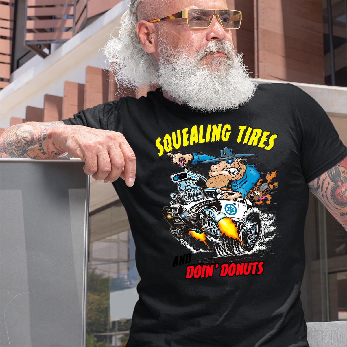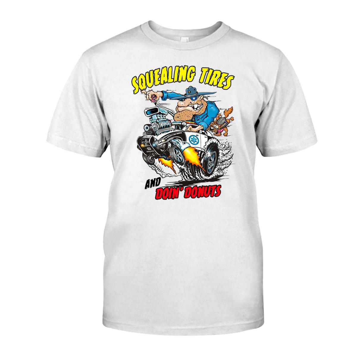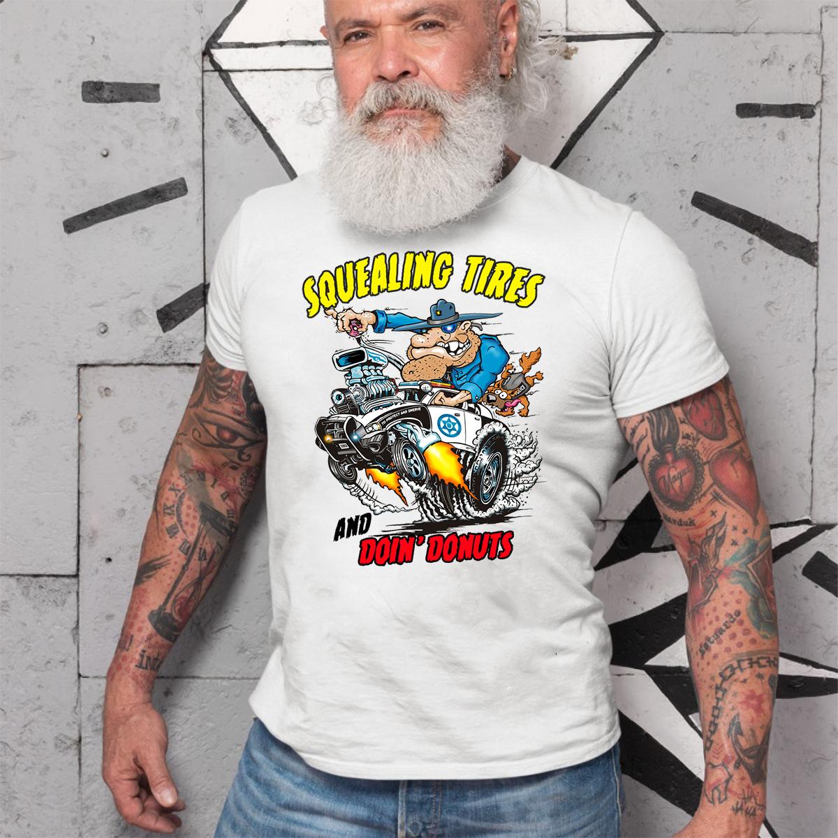 Burn rubber in style with the Squealing Tires and Doing Donuts T-shirt – a high-octane fusion of muscle, metal, and mayhem. Influenced by underground garage art and the raw spirit of old-school hot rods, this tee is made for rebels, gearheads, and hardcore Kustom Kulture warriors. Whether you’re spinning wrenches in the garage or leaving tire marks on the asphalt, it delivers bold attitude, raw energy, and authentic hot rod culture every time.