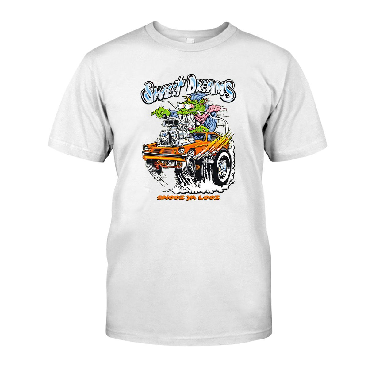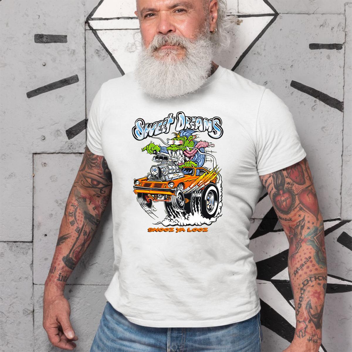 Step into the night with the Sweet Dreams T-shirt – a powerhouse blend of muscle, metal, and pure rebellion. Drawing inspiration from underground garage art and the raw energy of old-school hot rods, this tee is built for gearheads, outlaws, and fearless Kustom Kulture warriors. Whether you’re tuning up in the garage or tearing through the streets, it brings bold attitude, vintage hot rod style, and unapologetic edge every time you wear it.