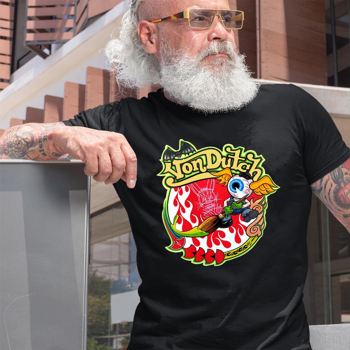 Von Dutch Flying Eyeball T Shirt – fierce, iconic, and loaded with hot rod energy. Inspired by underground garage art and the raw spirit of old-school muscle, this tee is made for rebels, gearheads, and Kustom Kulture enthusiasts who live life full throttle.